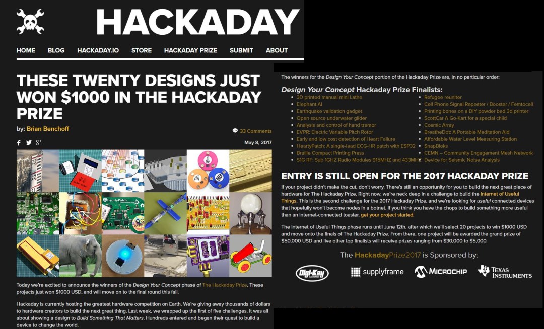 During the this year's Hackaday Prize 2017 Scott Car is under the 20 winners of the first round. I’m proud of it because there were another 590 awesome projects. All the details here: HackADay.com