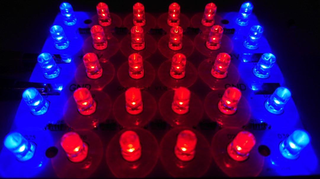 My idea to stack the led modules works. On the one on the left, I replaced two blue led's with a white and an UV one.