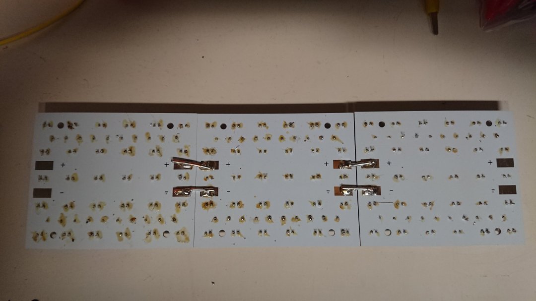 My idea to stack the led modules works. On the one on the left, I replaced two blue led’s with a white and an UV one. Share this: Click to share on X (Opens in new window) X Click to share on Facebook (Opens in new window) Facebook Like Loading... Published by AlainsProjects View all posts by AlainsProjects