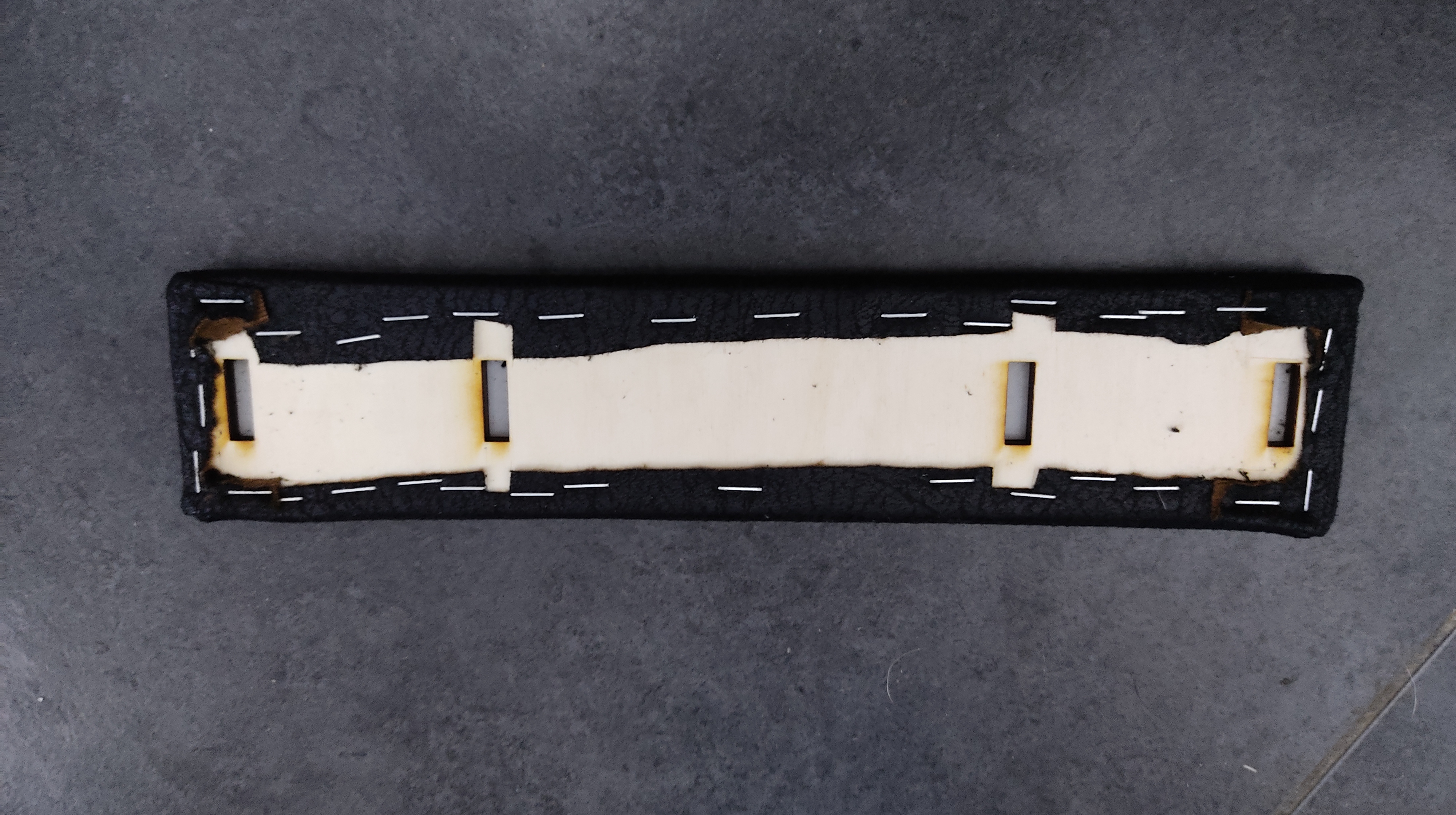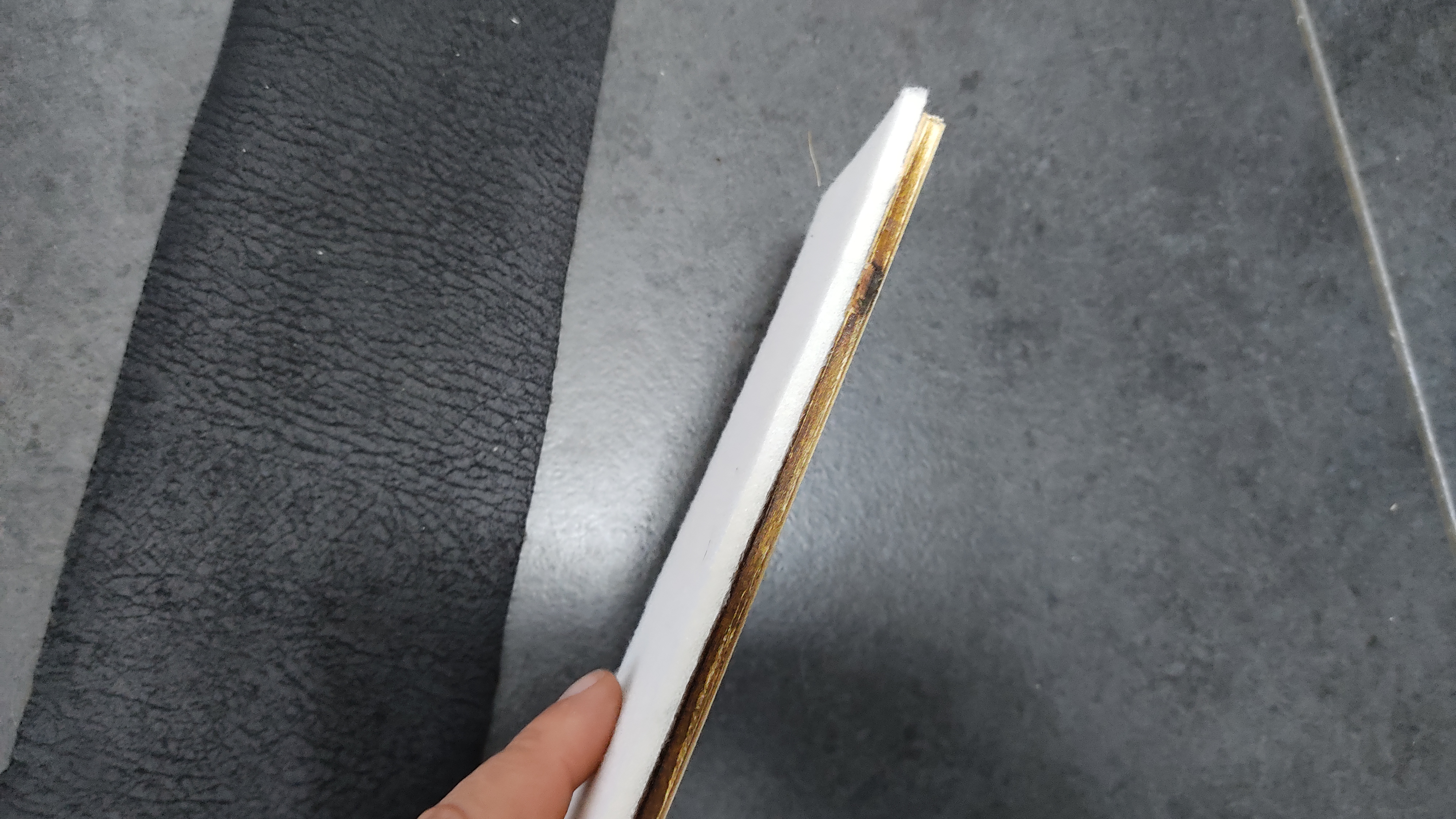 For the side parts I used foam and leatherette. The foam was glued on the wood, and with staples the leatherette was attached.