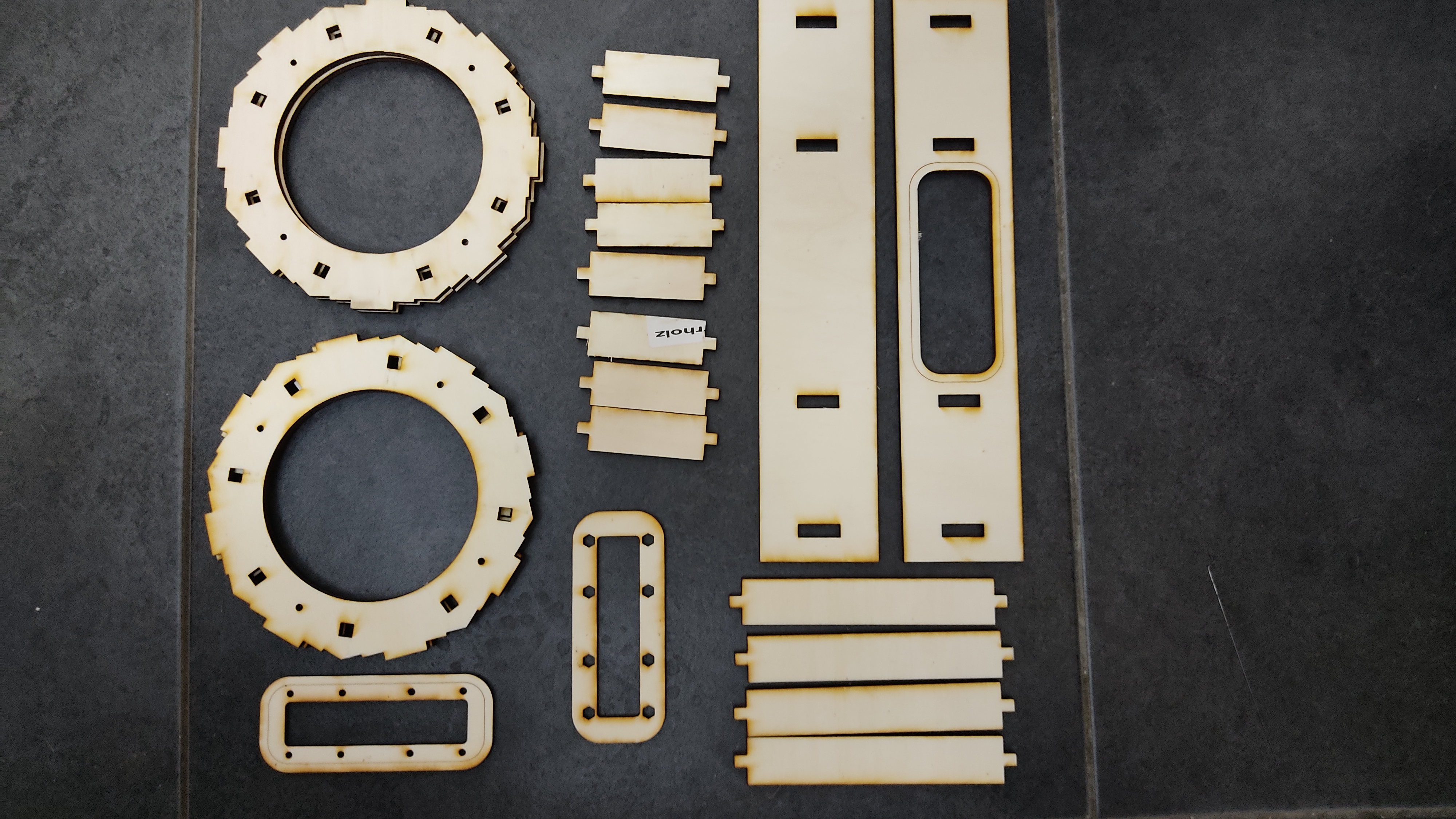 All the parts were laser cut. I used 6mm plywood for the main body