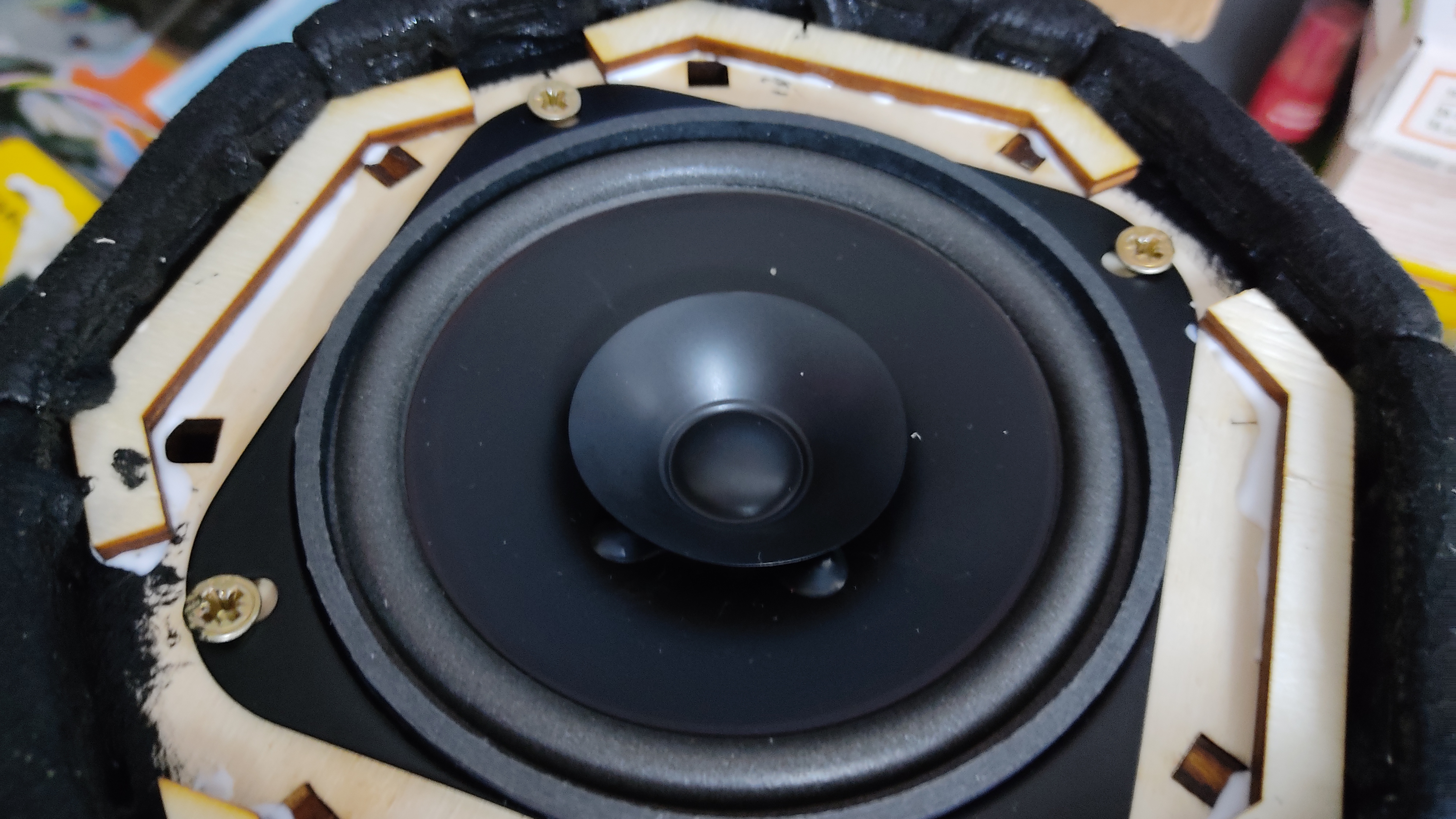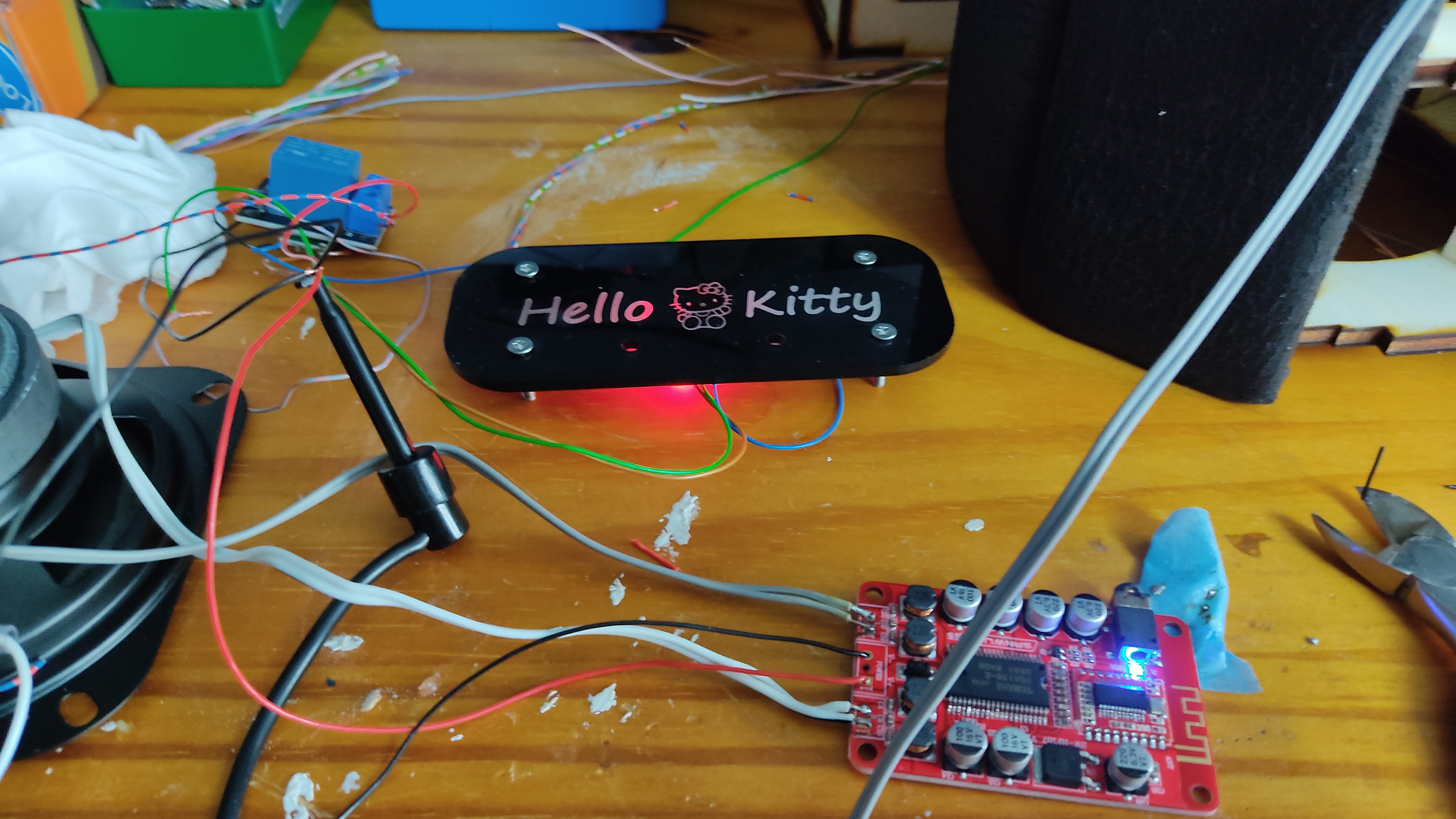 A cheap Bluetooth board and two car speakers are for the sound