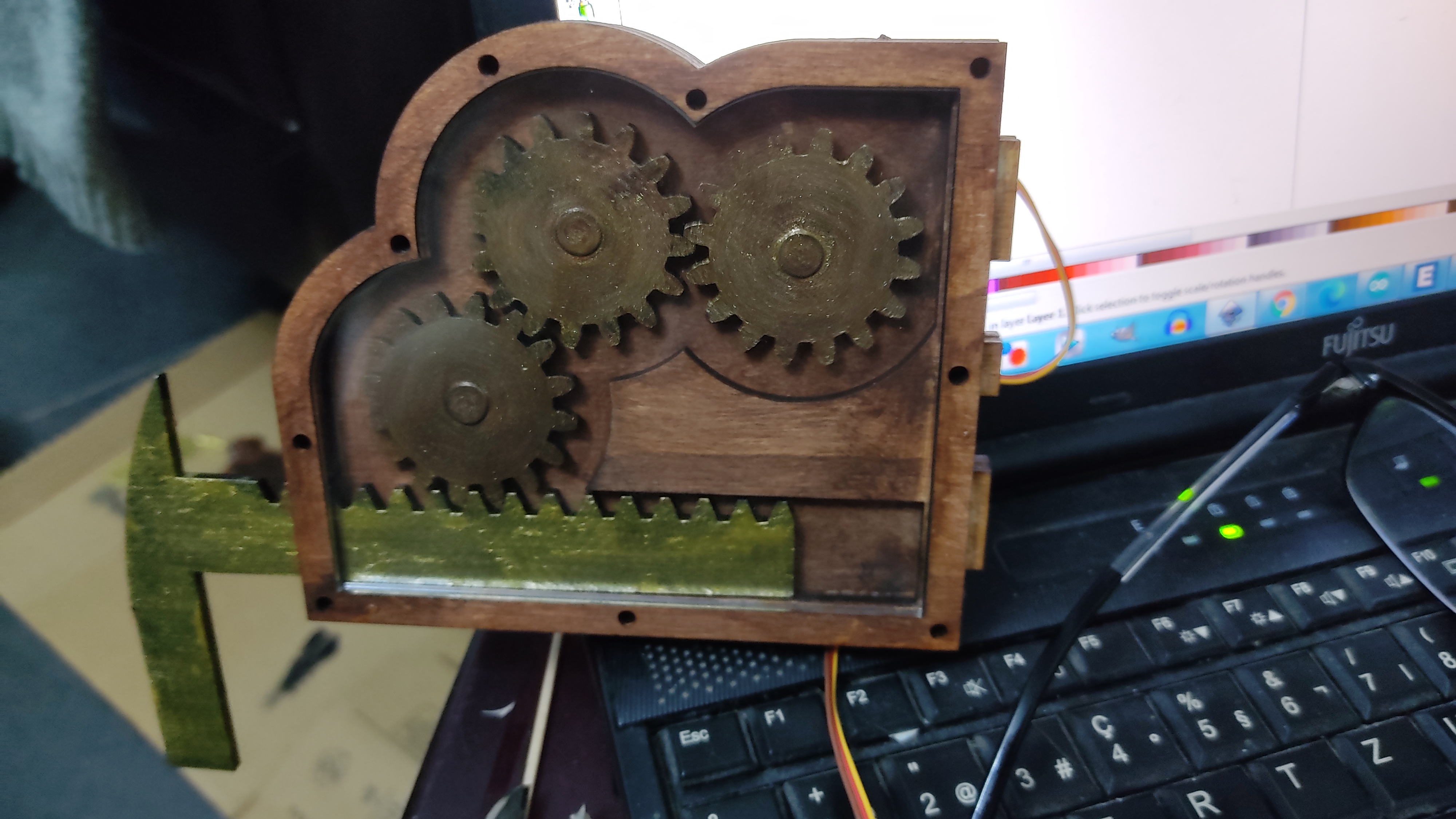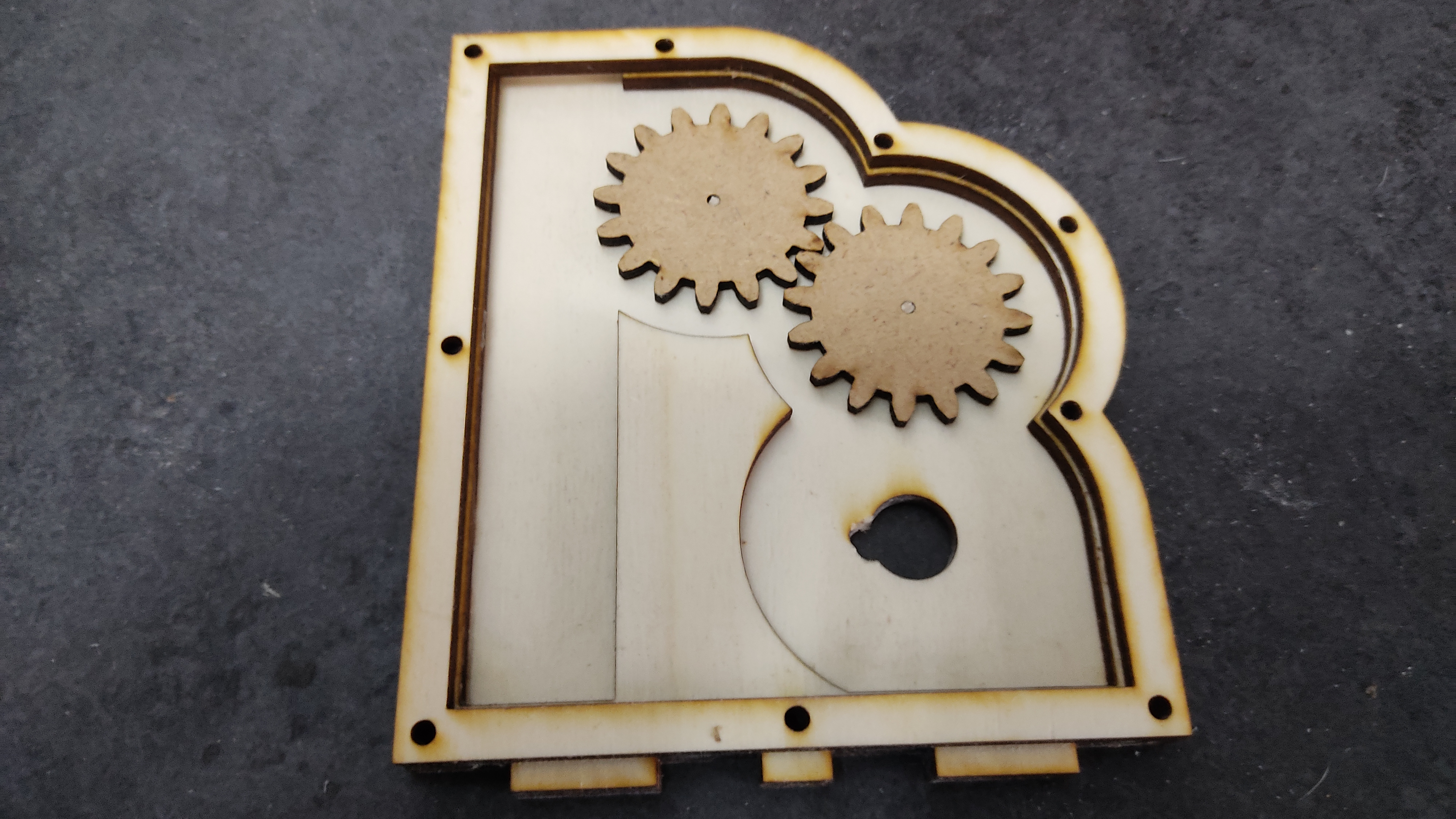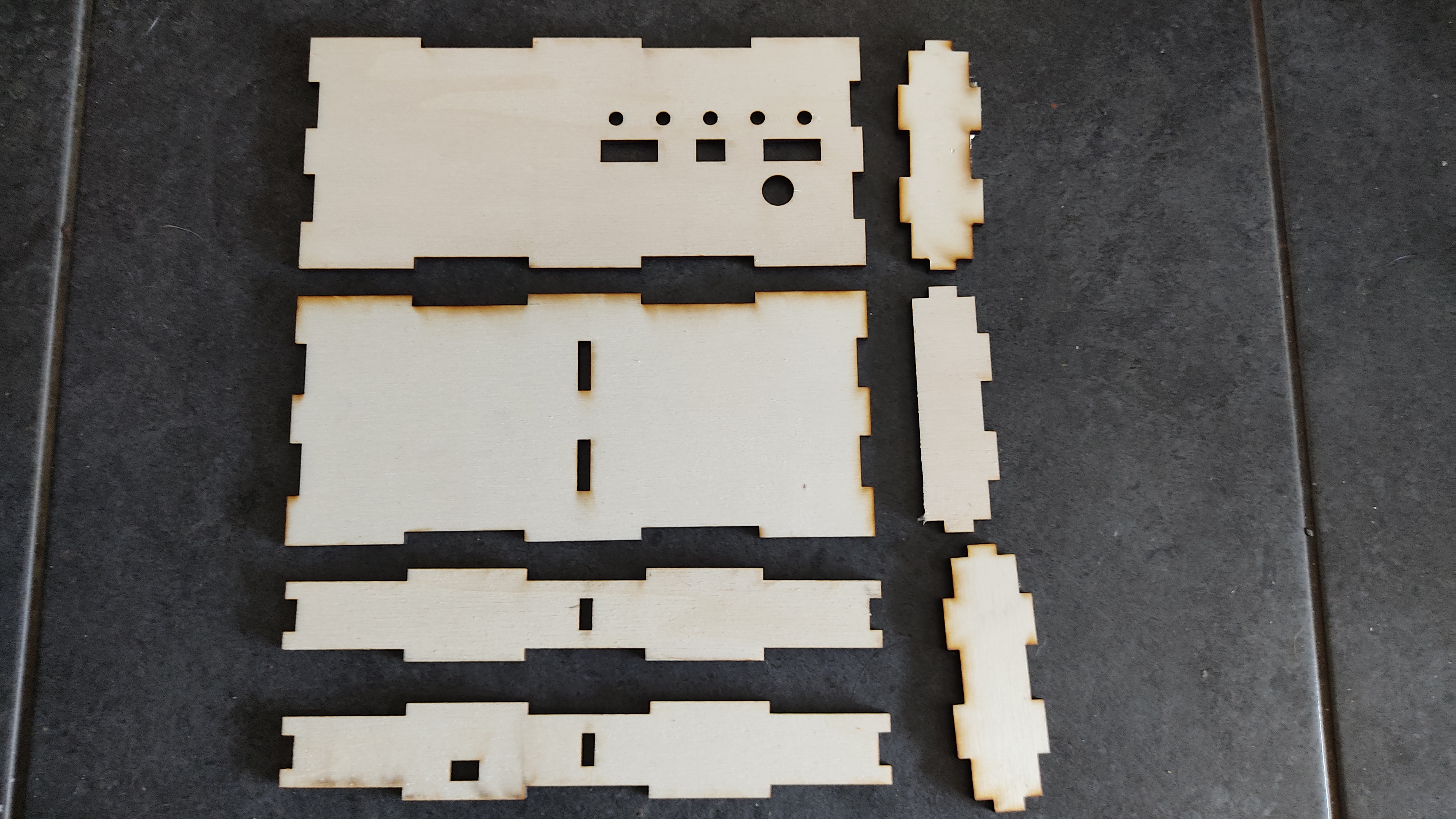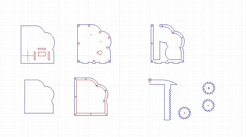 I’ve drawn all the parts in Qcad. Then they were laser cut, out of 4mm plywood and 3mm MDF