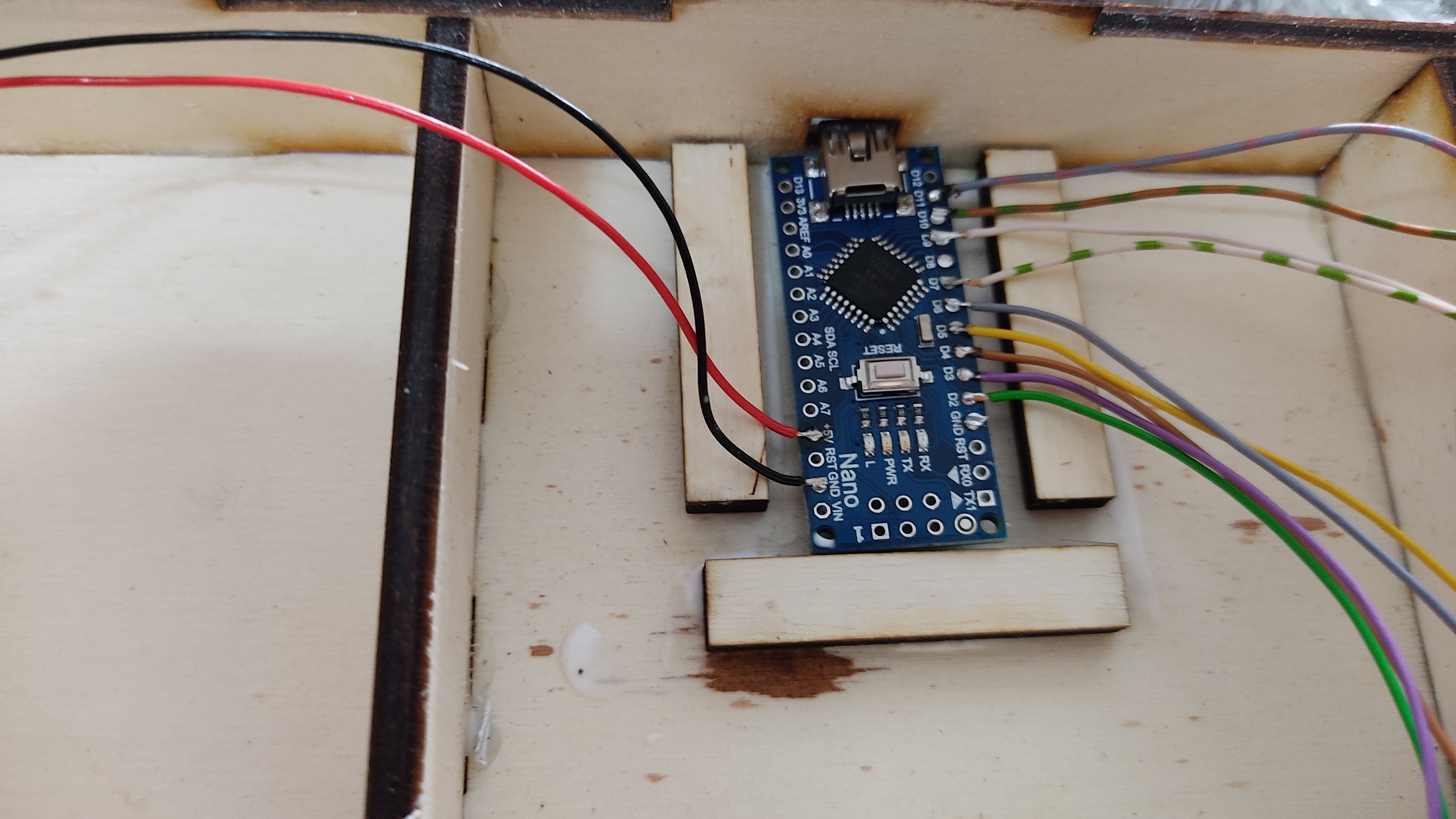 My first Idea was to use screws to hold the acrylic glass in place, but I changed my mind, and I’ve glued small wood pieces in place.This looks much cooler