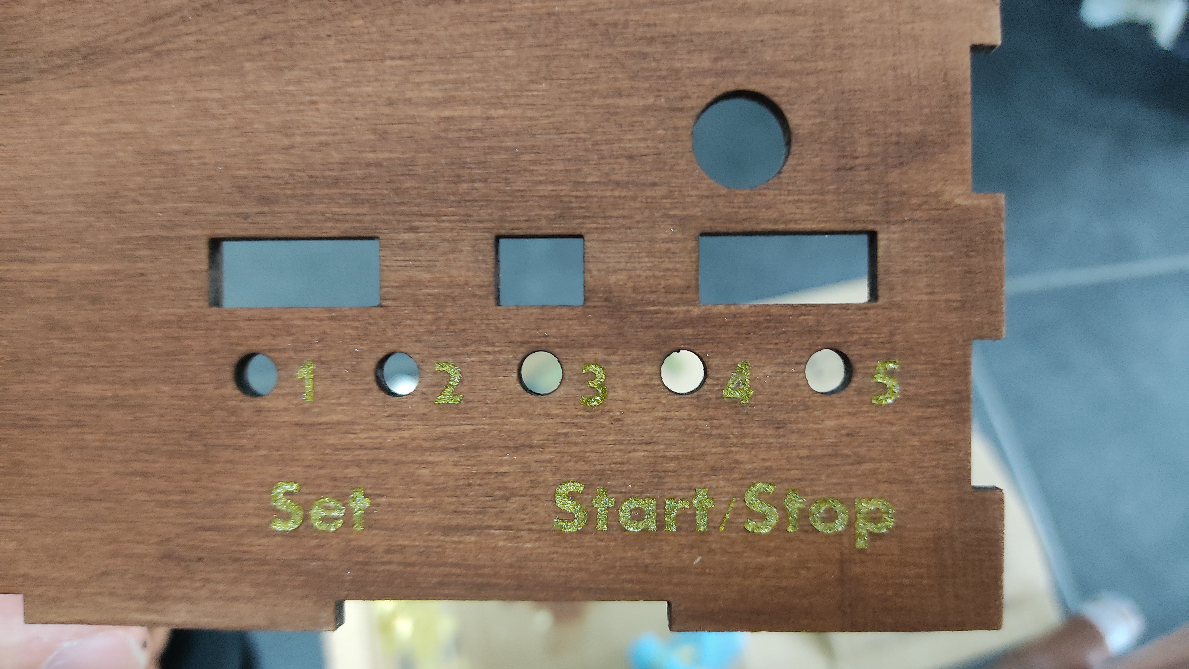 The text is engraved with a laser cutter an painted in gold.