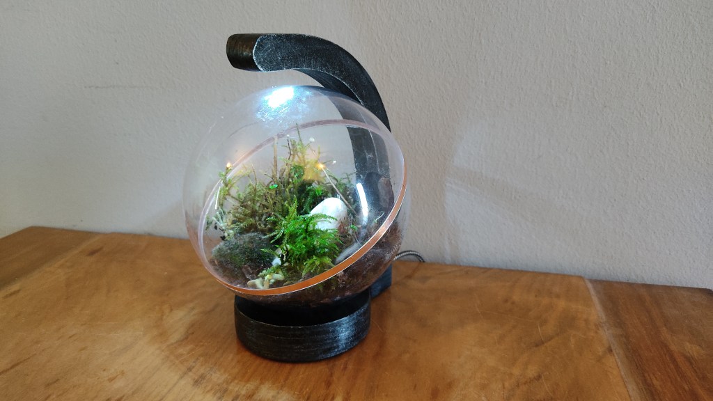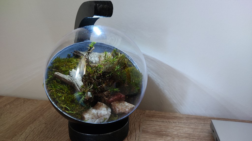 Hello, I had seen a few videos with moss terrariums and thought that would look good here at home. At the same time I had the idea to put the mini garden in a ball and use it as a desk or bedside lamp.
