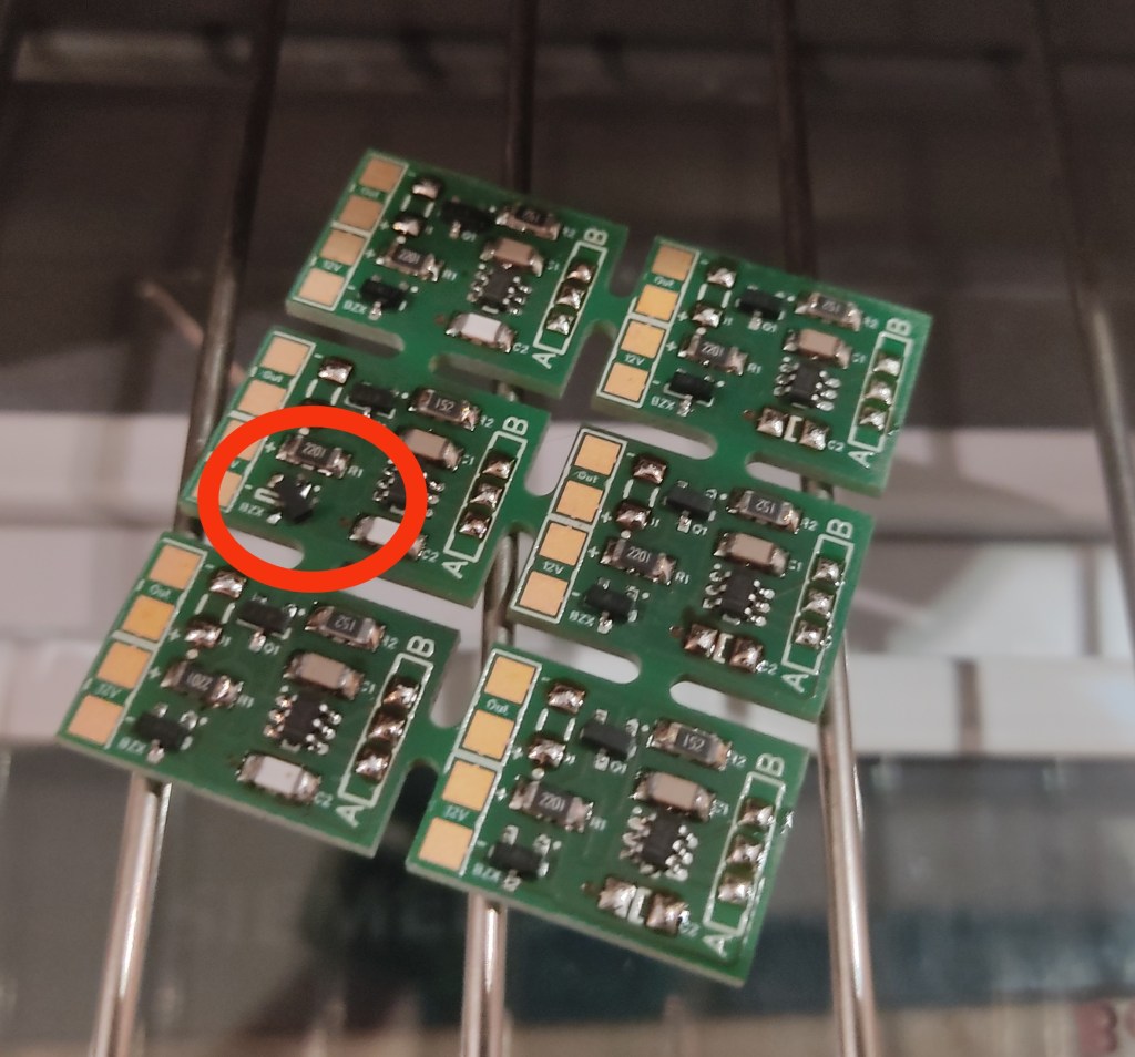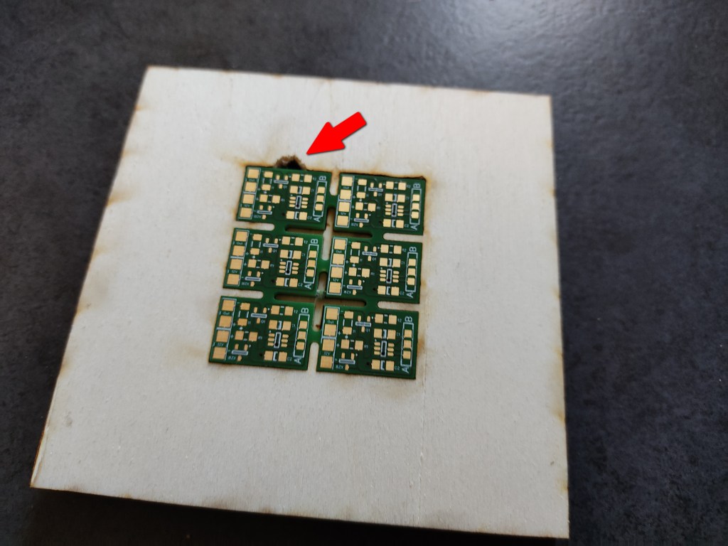 Here is the finished PCB after cooling down. 5 on 6 without problems.