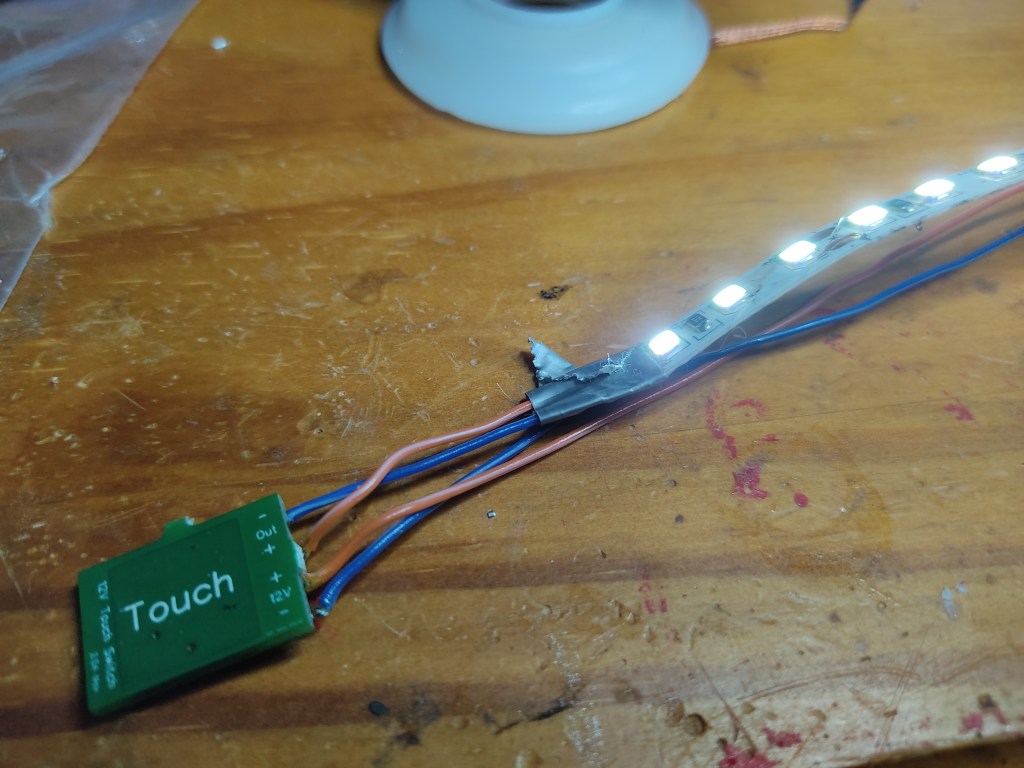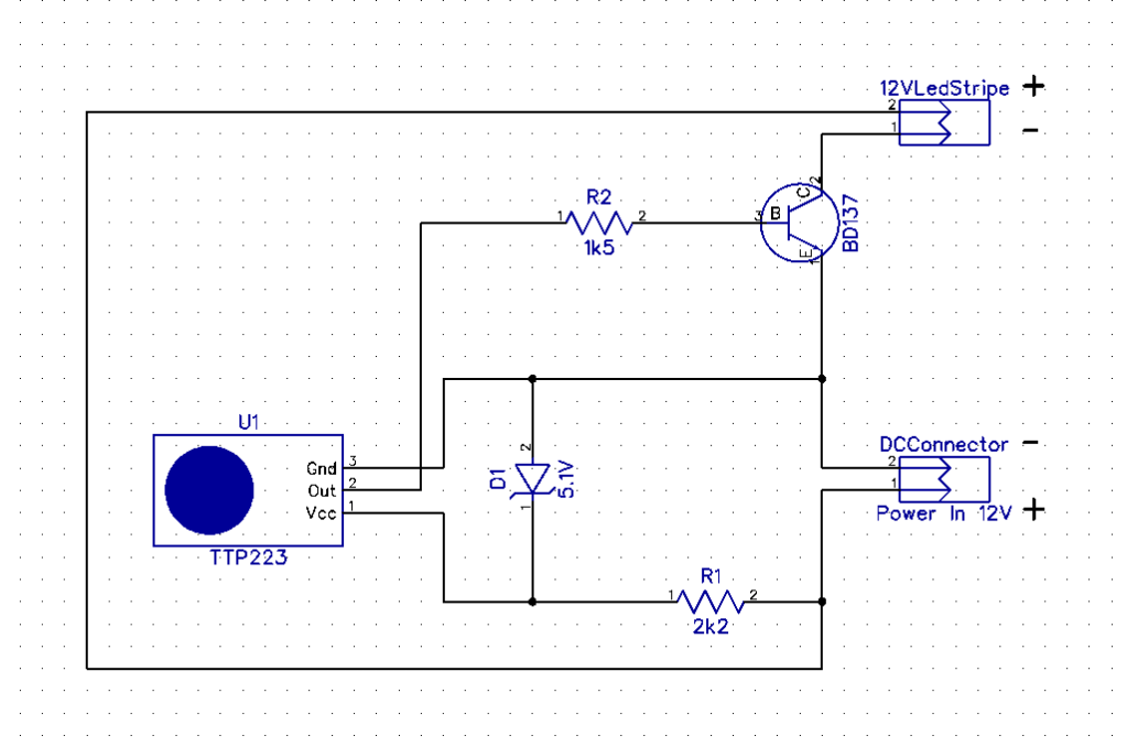 I built another LED lamp and wanted to use a TTP223 capacitive switch as usual. But Led Stripes have 12V and there was my problem again, the available TTP223 boards are 3-5V and have only a small switching current. Besides, I don’t need the LED on the board.