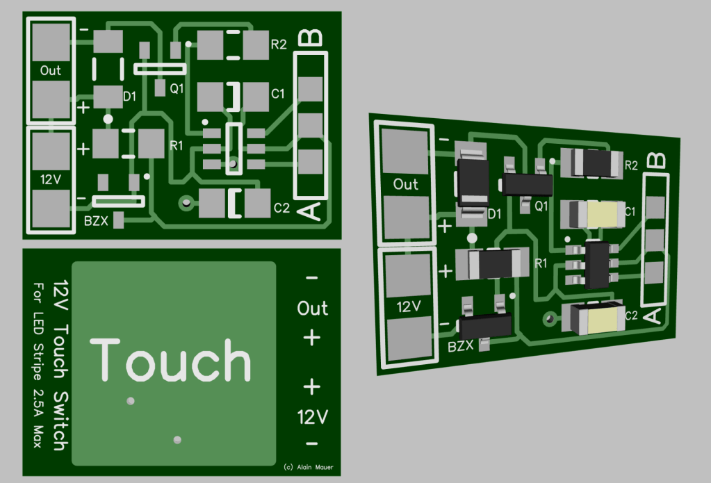 I hope that some of you can use these instructions. As I said, all the data including the Gerber files can be found here: https://github.com/awall9999/Capacitive-Touch-Switch-12V
