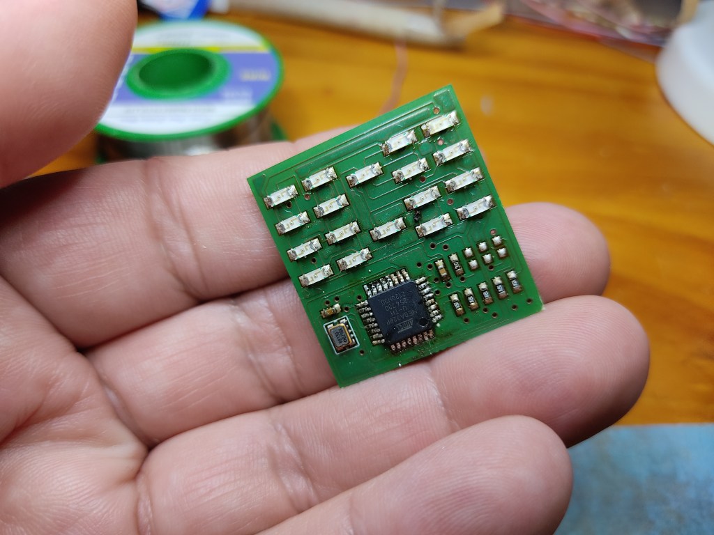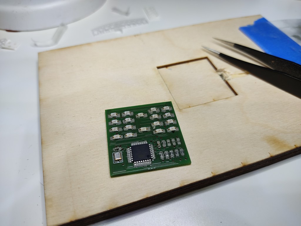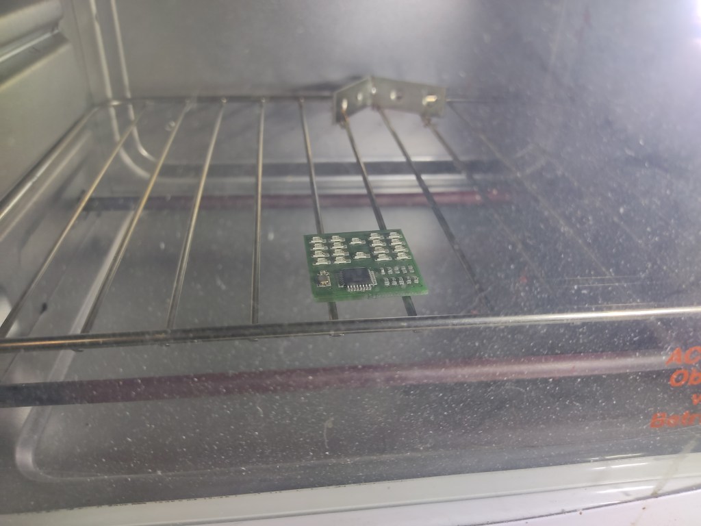 After I applied the solder paste and assembled everything, everything went into my 15€ pizza oven for +-6min on highest setting. Unfortunately, I have no fancy smd soldering device. What the heck, it works