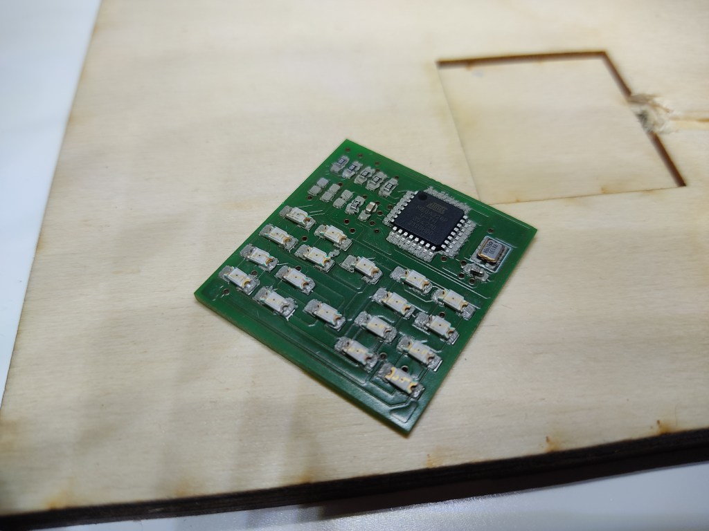 This is my second version of the binary clock. It is square and also uses charlieplexing.