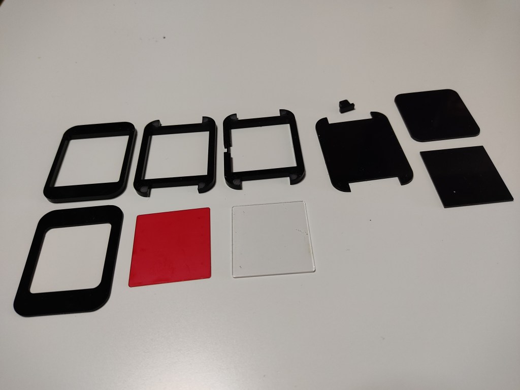 The middle part is made of three 3mm black plexiglass. The viewing window is made of 1mm transparent plexiglass.