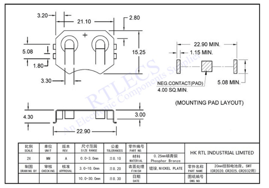 For the battery holder and the button, I unfortunately have no references. I bought them at Aliexpress. Here are the photos of the parts.
