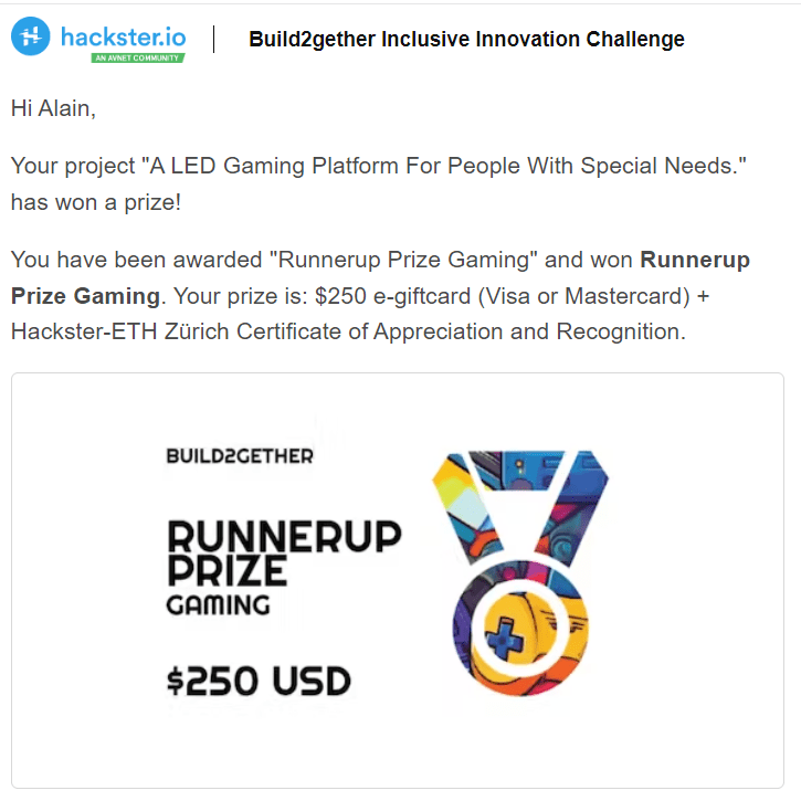 I am very proud to share with you that we made second place in the Build2gether Inclusive Innovation Challenge.