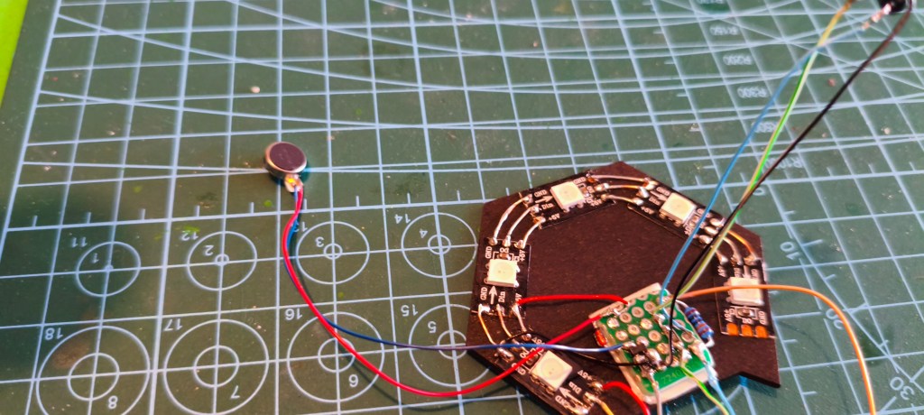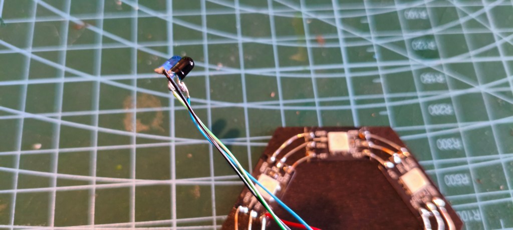 The water bottle on the USB-C-powered coaster is detected by the IR transmitter and receiver diode and starts a 15-minute timer. After 5 minutes, it flashes yellow briefly, and after 10 minutes, it flashes green-blue again. After 15 minutes, the ring flashes red and blue alternately. The coaster also vibrates three more times. The flashing light continues until the bottle is removed. When the bottle is replaced, the timer restarts. That’s all there is to it. Simple and effective.